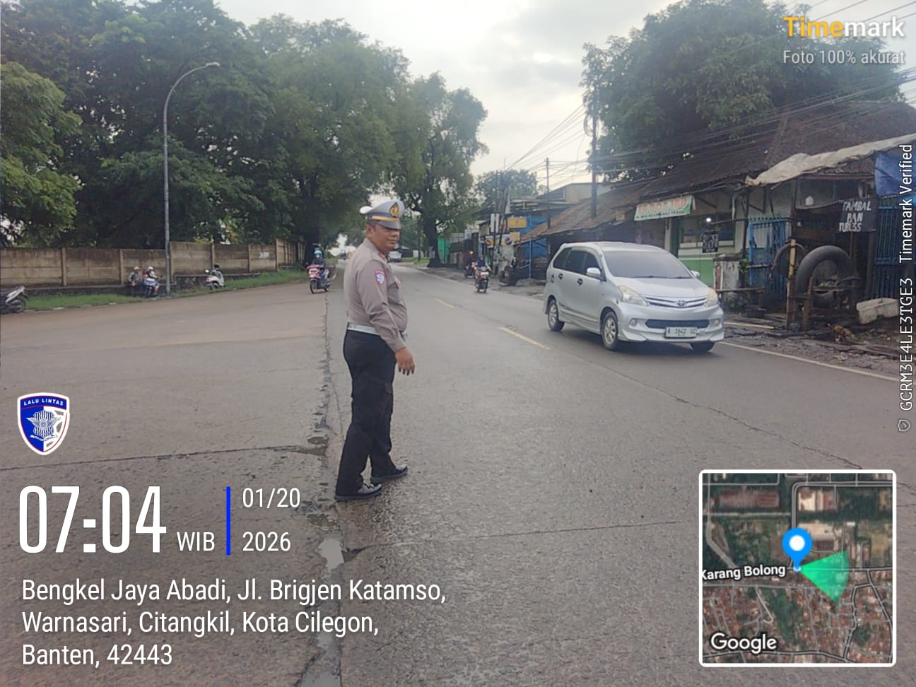 Cilegon - Dalam Mewujudkan Aksi Nyata Pelayanan Kepada Masyarakat,Personil Polsek Ciwandan Polres Cilegon Polda Banten Laksanakan Strong Poin Pengaturan Lalu-lintas,Selasa (20/01/2026).