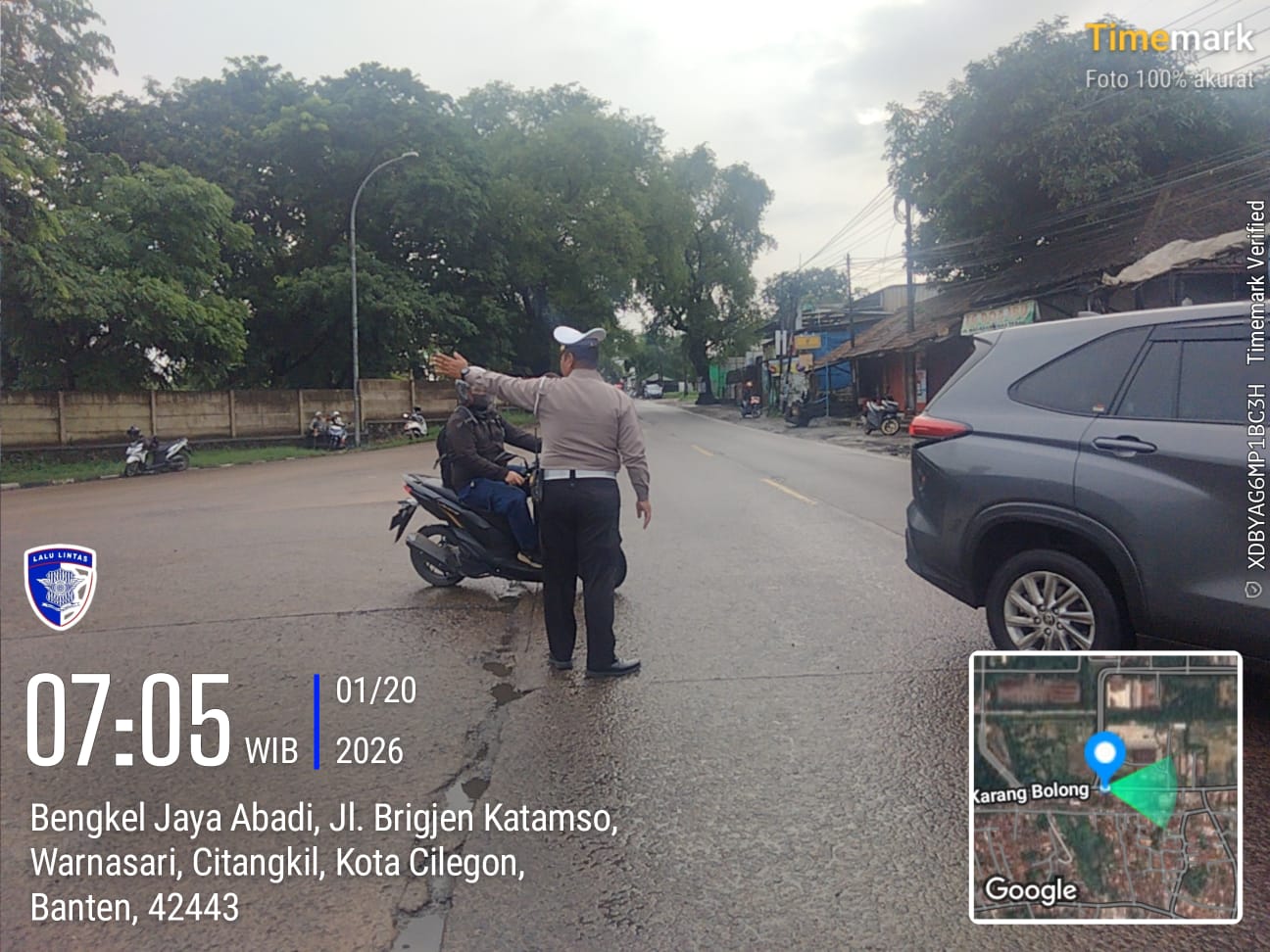 Cilegon - Dalam Mewujudkan Aksi Nyata Pelayanan Kepada Masyarakat,Personil Polsek Ciwandan Polres Cilegon Polda Banten Laksanakan Strong Poin Pengaturan Lalu-lintas,Selasa  (20/01/2026).