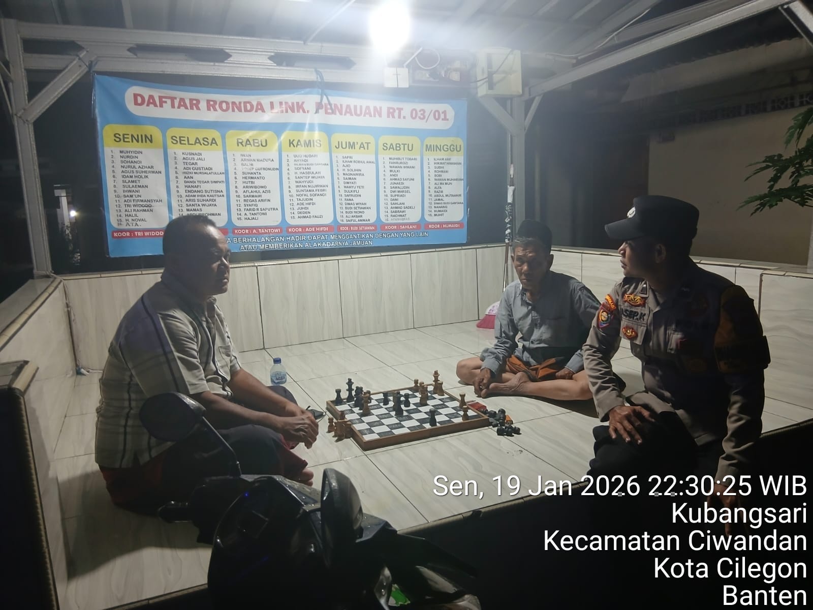 Cilegon - Guna Mencegah Terjadinya Tindak Kejahatan dan Menggiatkan Patroli Pos Ronda Siskamling di Pemukiman warga masyarakat,Personil Polsek Ciwandan Polres Cilegon Polda Banten Mengajak dan memantau pelaksanaan ronda siskamling di lingkungan daerah hukum Polsek Ciwandan, Selasa (20/01/2026).