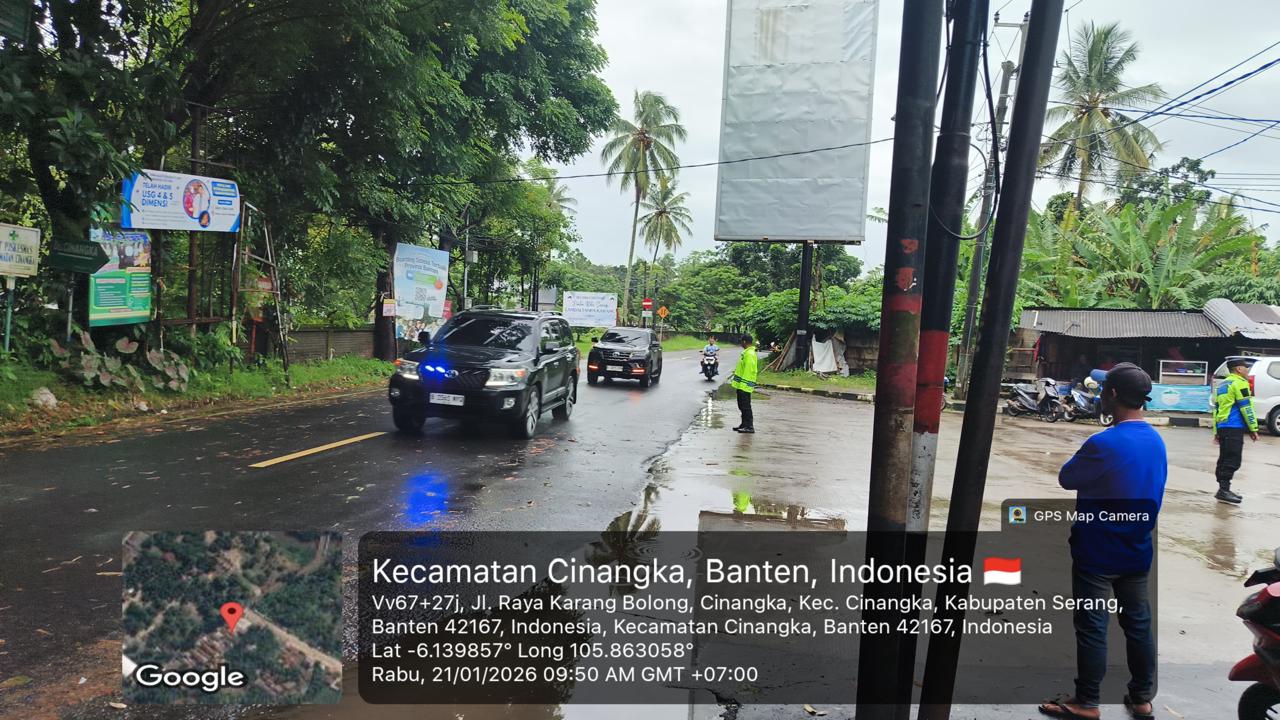 *Polres Cilegon* - Dalam Mewujudkan Aksi Nyata Pelayanan Kepada Masyarakat,Personil Polsek Cinangka Polres Cilegon Polda Banten Laksanakan Strong Poin Pengaturan Lalu-lintas,Rabu (21/01/2026).