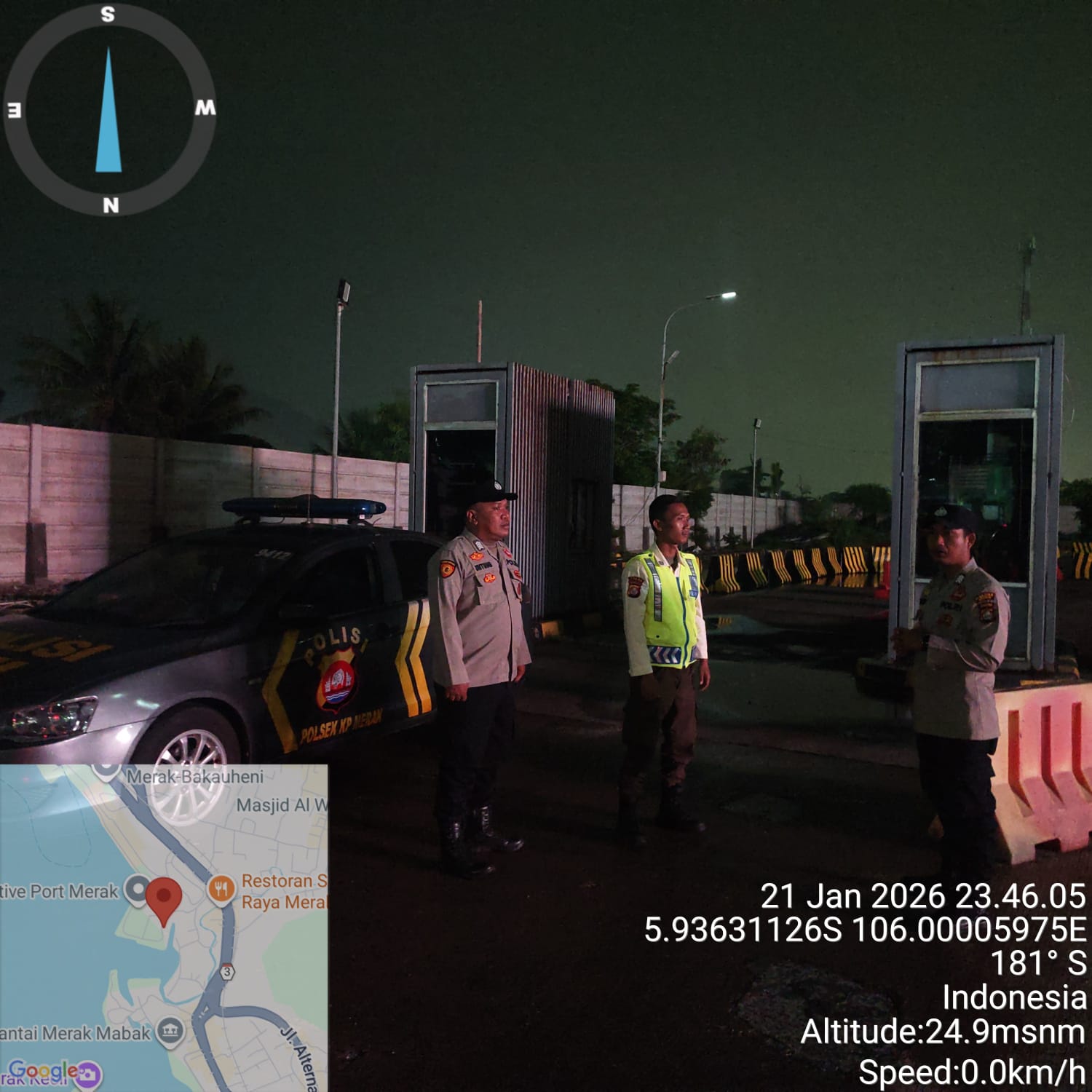 Cilegon - Personil Polsek Kskp Merak Polres Cilegon melaksanakan patroli di kawasan pelabuhan merak memberikan rasa aman dan damai, Kamis (22/01/2026)