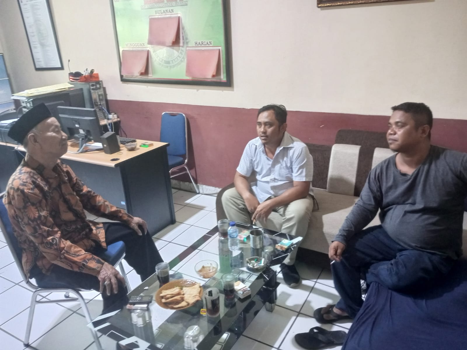 Personil sat intelkam melakukan koordinasi dengan tokoh agama kec. Jombang kota cilegon.