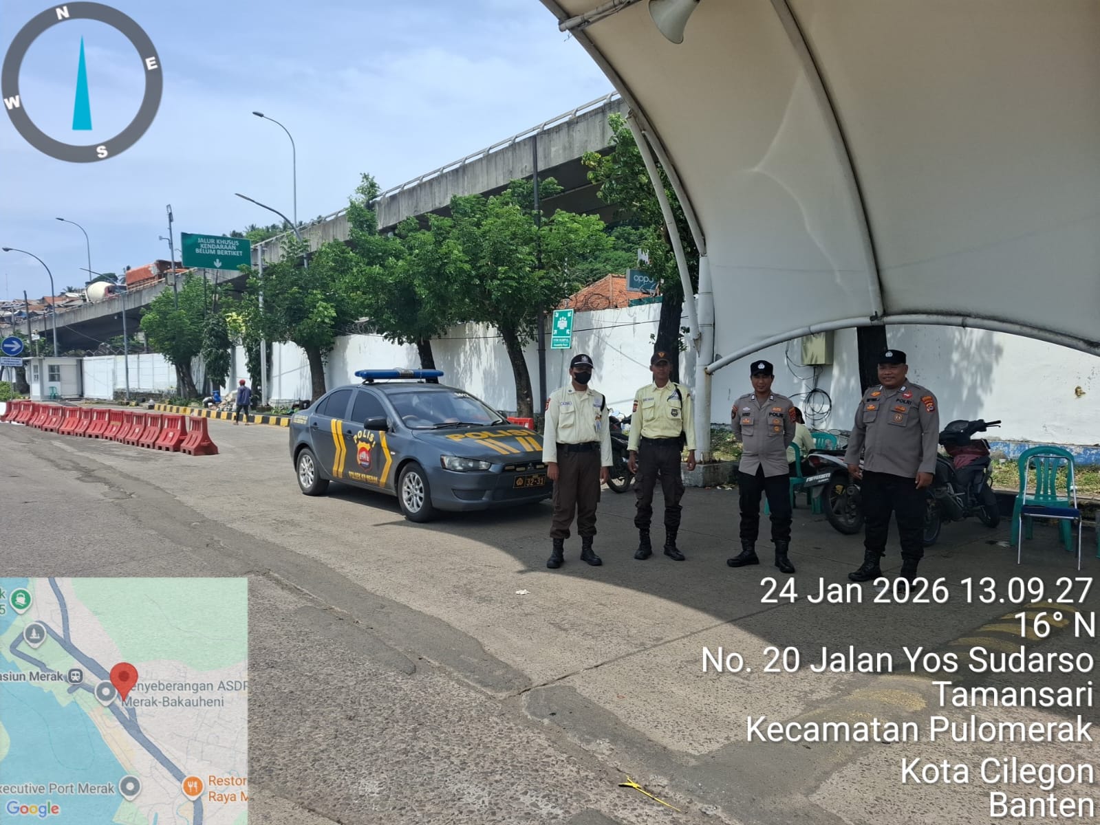 Cilegon - Personel Polsek Kskp Merak Polres Cilegon Polda Banten melaksanakan sambang dan patroli kawasan pelabuhan merak dalam rangka menjaga Harkamtibmas di Kawasan Pelabuhan Merak, Sabtu (24/01/2026).