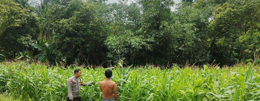 Dalam kegiatan monitoring ini, Bhabinkamtibmas meninjau langsung kondisi lahan jagung.