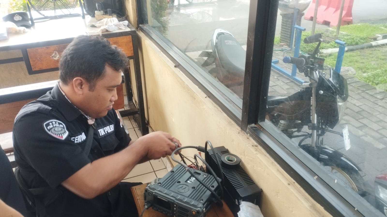 Anggota Tik Polres Cilegon Menyiapkan Sarana dan Prasarana Alkom Dalam pelaksanaan tugas tersebut anggota TIK Polres Cilegon yang bertanggung jawab untuk menyiapkan peralatan sarana alkom berupa handy talky. Selain itu agar di tidak ada gangguan pada jaringan, sebelum pelaksanaan anggota TIK melakukan pemeriksaan terhadap sarana dan prasarana tersebut . Satu jam sebelum sarana alkom digunakan. Kapolres Cilegon AKBP. DR. MARTUA RAJA TARIPAR LAUT SILITONGA. melalui Kasi TIK IPTU Jajang Rohendi menyampaikan bahwa “untuk menunjang kelancaran penyampaian informasi anggota TIk Polres Cilegon selalu memeriksa sarana dan prasarana tersebut, sebelum maupun pada saat pelaksanaan akan selalu di monitor”