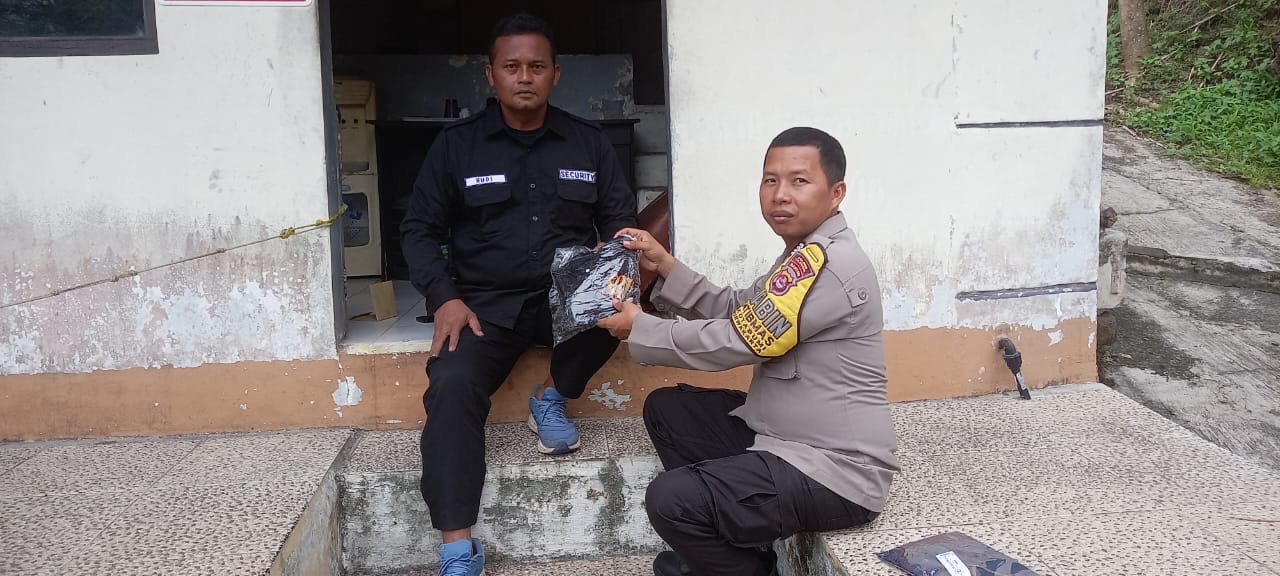 Bhabinkamtibmas Monitoring Wilayah, Pastikan Kamtibmas Aman dan Serahkan Kaos Satpam kepada Petugas Jaga Perumahan Bukit Palm Hills