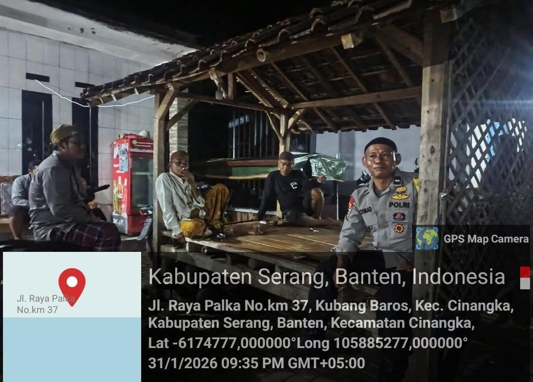 *Polres Cilegon* || Personil Bhabinkamtibmas Polsek Cinangka melaksanakan Program Komandan Wish Kapolda Banten RONDA SATKAMLING menyampaikan komunikasi dengan Petugas Siskamling agar berperan aktif dalam menciptakan Harkamtibmas yang aman dan Kondusif, Minggu (01/02/2026).
