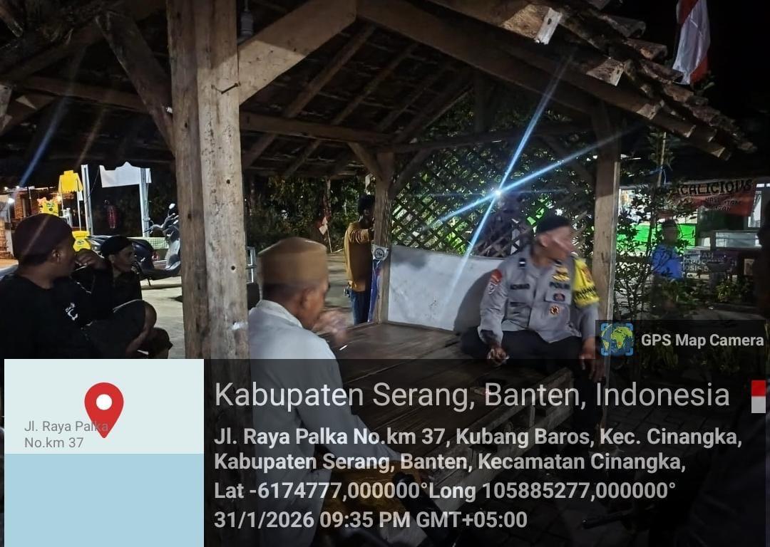 *Polres Cilegon* || Personil Bhabinkamtibmas Polsek Cinangka melaksanakan Program Komandan Wish Kapolda Banten RONDA SATKAMLING menyampaikan komunikasi dengan Petugas Siskamling agar berperan aktif dalam menciptakan Harkamtibmas yang aman dan Kondusif, Minggu (01/02/2026).
