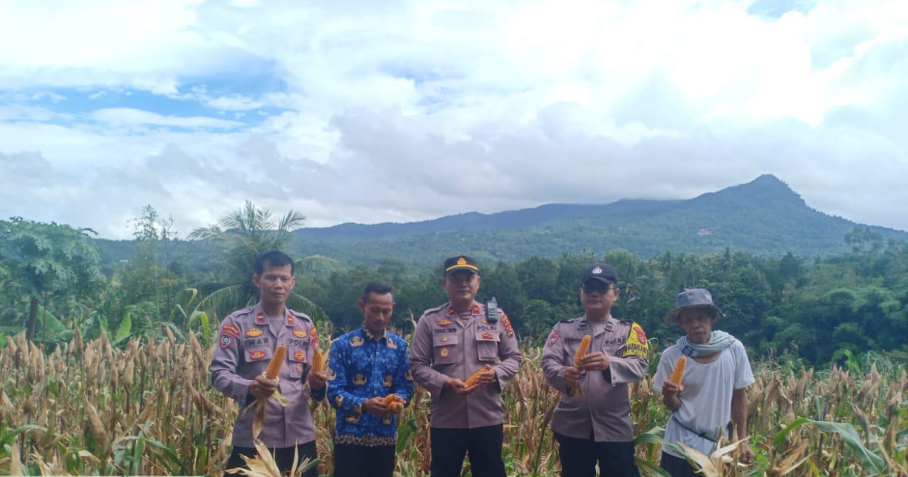 Anggota Polsek Anyar Lakukan Pendampingan Panen Jagung Kelompok Tani Desa Kewilayahan