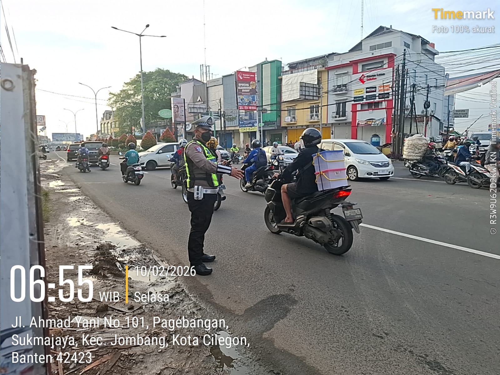 Cilegon – Polres Cilegon Polda Banten laksanakan Kegiatan Strong Point dalam rangka pengaturan arus lalu lintas dan kepadatan kendaraan pada jalur protokol/rawan macet di Darkum Polres Cilegon, Selasa (10/02/2026).