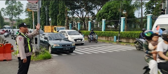 Strong Point Pagi, Personel Polsek Purwakarta Polres Cilegon Memperlancar Arus Lalu Lintas di Persimpangan ADB