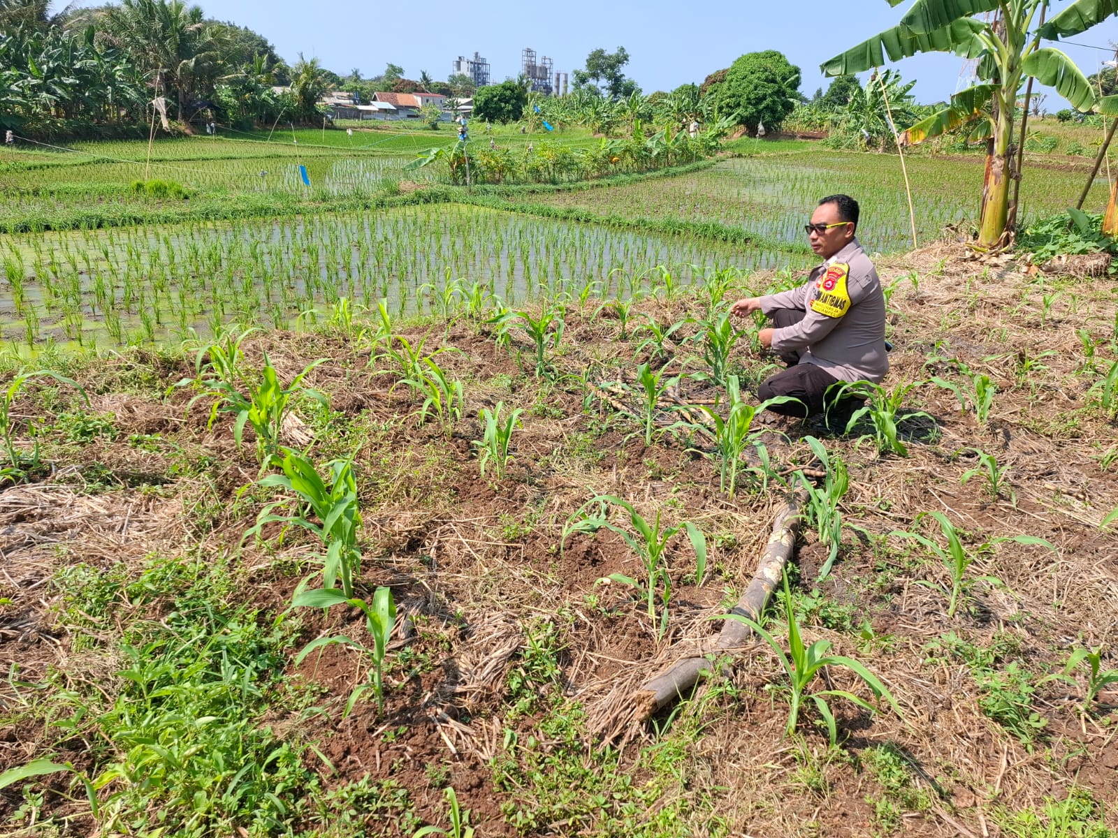 Panntau aktif lahan jagung pok tani sinarjaya kecamatan puloampel Desa sumranja oleh Bhabinkamtibmas Polsek Puloampel