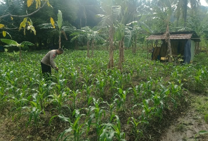 Kegiatan ini bertujuan untuk memastikan kondisi tanaman jagung tetap optimal serta memberikan dukungan kepada petani dalam mengelola lahan pertanian. Selain memeriksa pertumbuhan tanaman, Aipda Anton juga berkomunikasi langsung dengan para petani untuk mendengar keluhan dan memberikan informasi terkait upaya pencegahan gangguan serta keamanan di wilayah sekitar lahan pertanian.