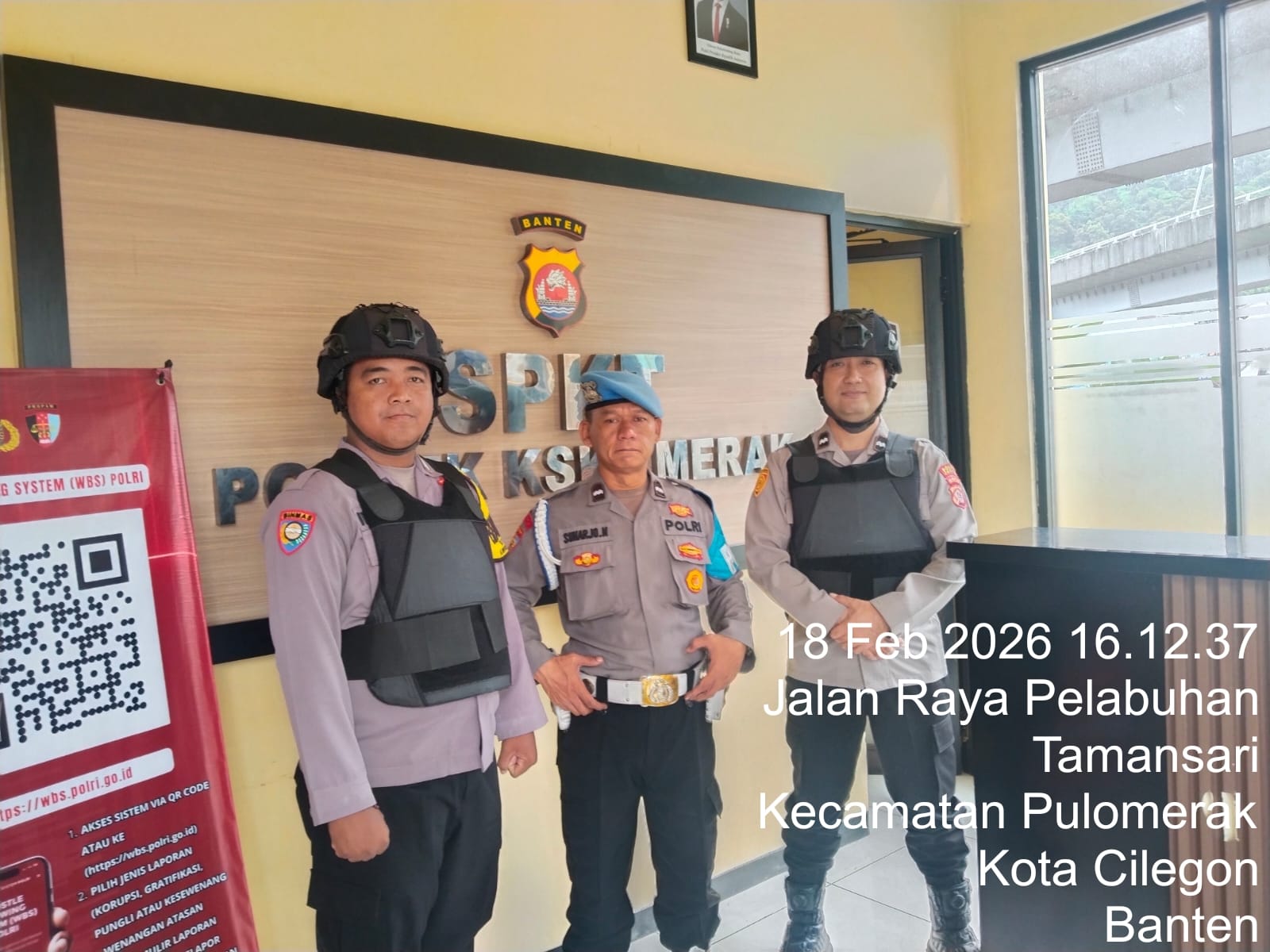 Cilegon - Personel piket jaga Polsek Kskp Merak Polres Cilgon Polda Banten melaksanakan siaga 1 Polsek pelaksanaan Sispam Mako oleh piket siaga dipimpin oleh Kspk Polsek Kskpy Merak Polres Cilegon Polda Banten, Rabu (18/02/2026).