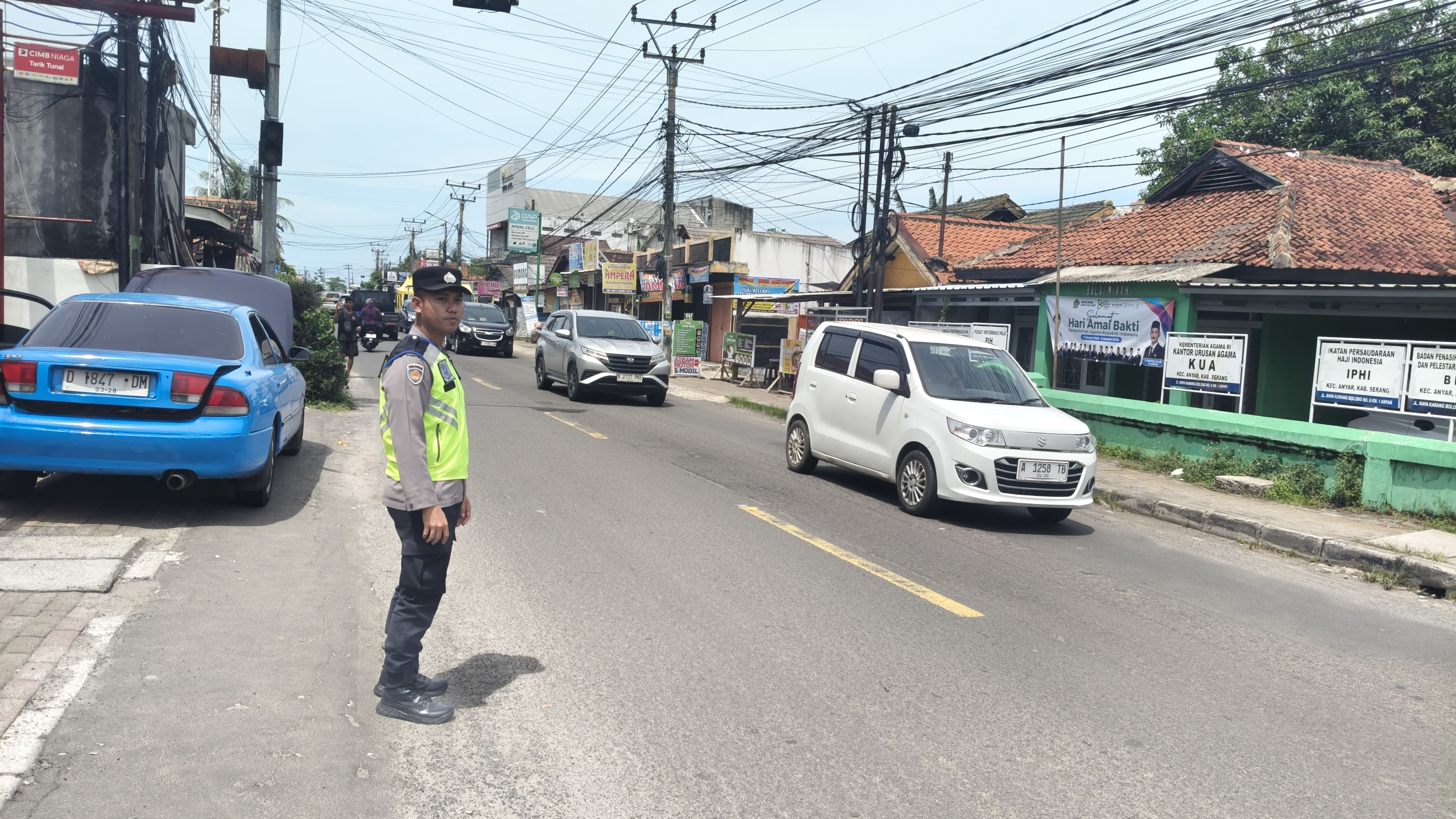 Personel Seksi Keuangan (Sikeu) Polres Cilegon melaksanakan kegiatan pengaturan lalu lintas di sejumlah ruas jalan utama Kota Cilegon, guna memberikan rasa aman dan nyaman kepada masyarakat pengguna jala.