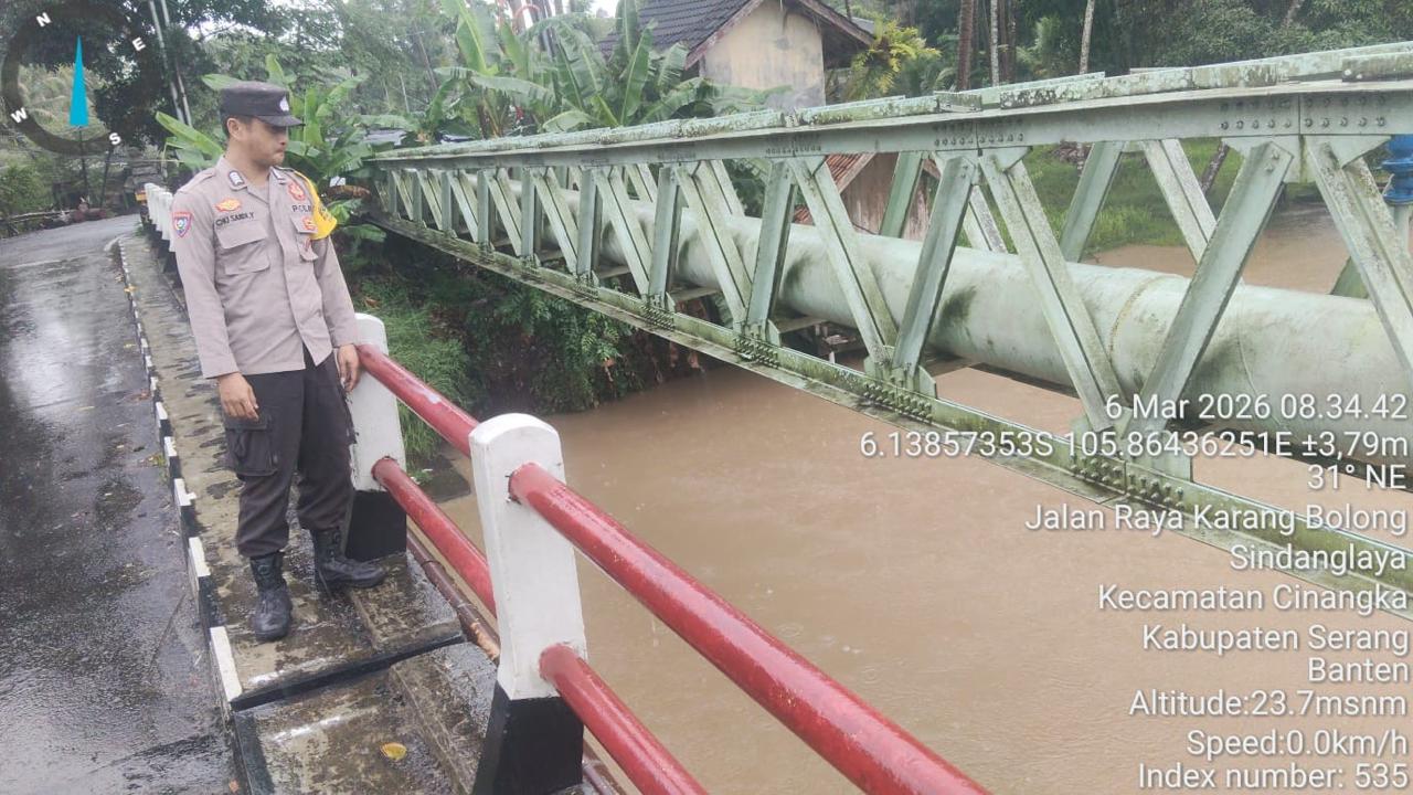 Piket Polsek Cinangka secara rutin melakukan pengecekan kondisi sungai dan berkoordinasi dengan pihak terkait untuk memantau perkembangan debit air. Pemantauan ini juga melibatkan partisipasi aktif dari masyarakat setempat.