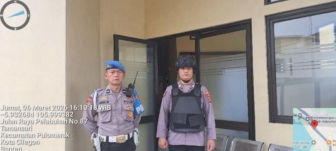 Cilegon - Personel piket jaga Polsek Kskp Merak Polres Cilgon Polda Banten melaksanakan siaga 1 Polsek pelaksanaan Sispam Mako oleh piket siaga dipimpin oleh Kspk Polsek Kskpy Merak Polres Cilegon Polda Banten, Jumat (06/03/2026).