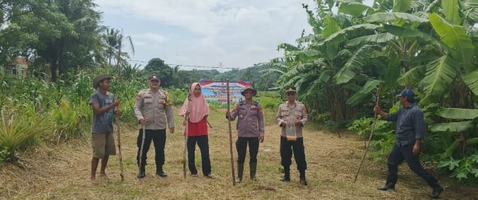 Kegiatan tersebut dihadiri langsung oleh Kapolsek Purwakarta IPTU Sukanda, didampingi Kanit Binmas IPDA Surahman, para Bhabinkamtibmas, serta warga masyarakat setempat yang turut berpartisipasi dalam kegiatan penanaman jagung di lahan yang telah disiapkan.
