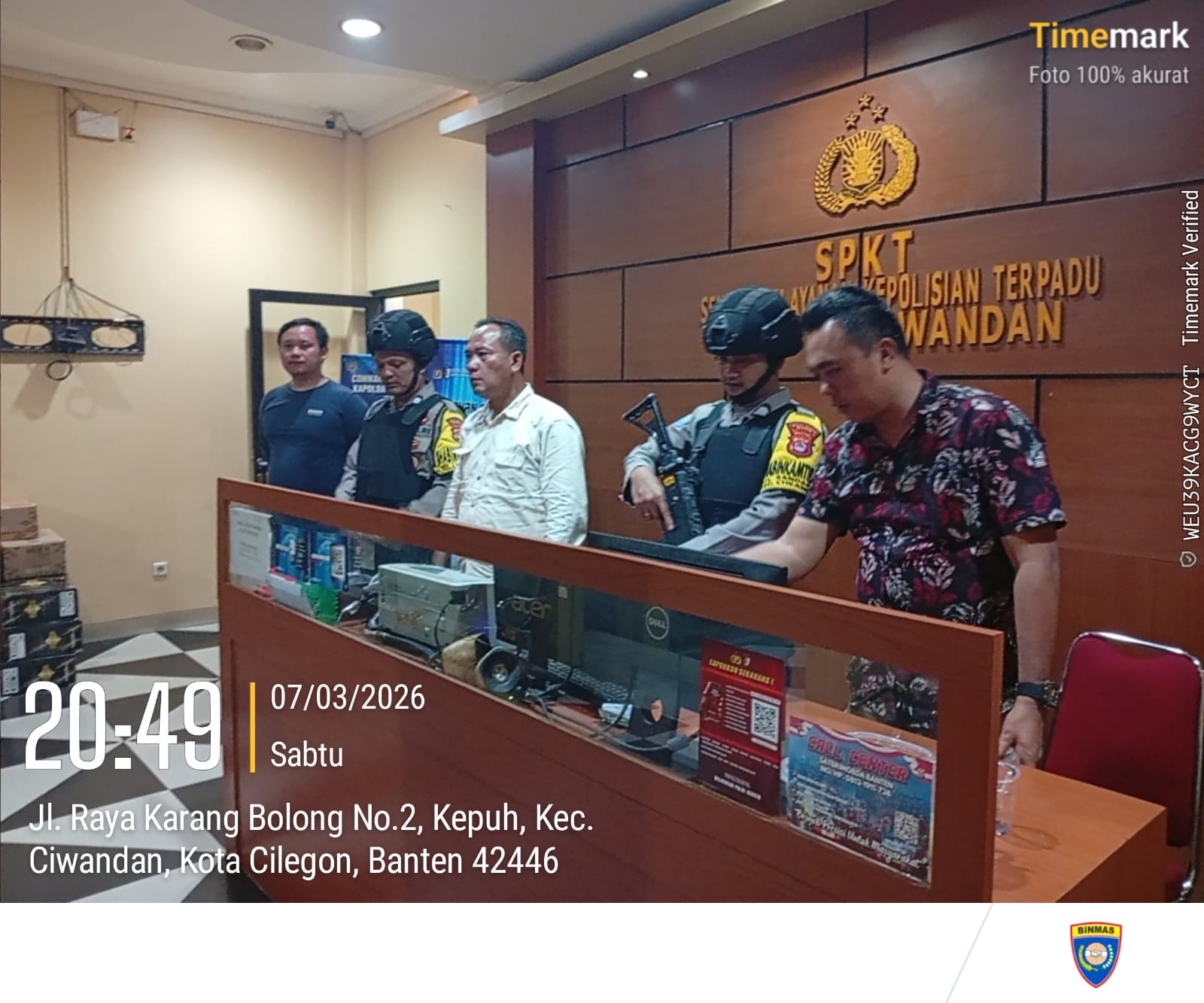 Kapolres Cilegon Polda Banten AKBP Dr. Martua Raja Taripar Laut Silitonga Melalui Kapolsek Ciwandan Polres Cilegon Polda Banten KOMPOL Achri Dwi Yunito Mengatakan, kegiatan Sispam Mako ini Wujud Kesiapan Siagaan Personel Polsek Ciwandan dalam Melaksanakan Penjagaan Mako Polsek,dan juga untuk mengantisipasi terjadinya tamu tidak diundang atau orang yang tidak dikenal yang dapat mengancam mako maupun personel Polsek Ciwandan.