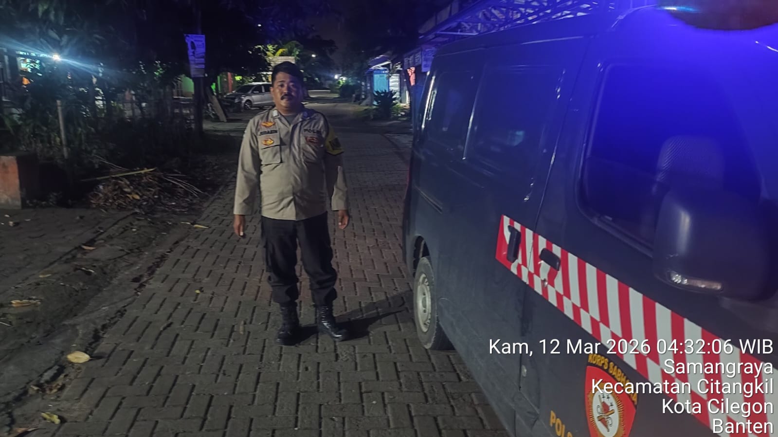 Cilegon - Personil Polsek Ciwandan Polres Cilegon Polda Banten Dalam Pelaksanaan Kegiatan Patroli dengan menyalakan lampu rotator berwarna biru di Daerah Hukum Polsek Ciwandan Polres Cilegon Polda Banten dari malam hingga dini hari, dalam rangka menciptakan situasi aman dan kondusif, Kamis (12/03/2026).