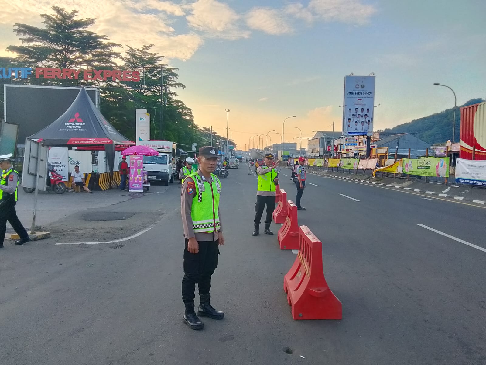 Cilegon - Dalam rangka peningkatan pelayanan prima kepada masyarakat, Kskp Merak Polres Cilegon Polda Banten melaksanakan pengaturan antrian R4 yang akan masuk ke Kapal Ferry di Pelabuhan Merak, Senin (16/03/2026).