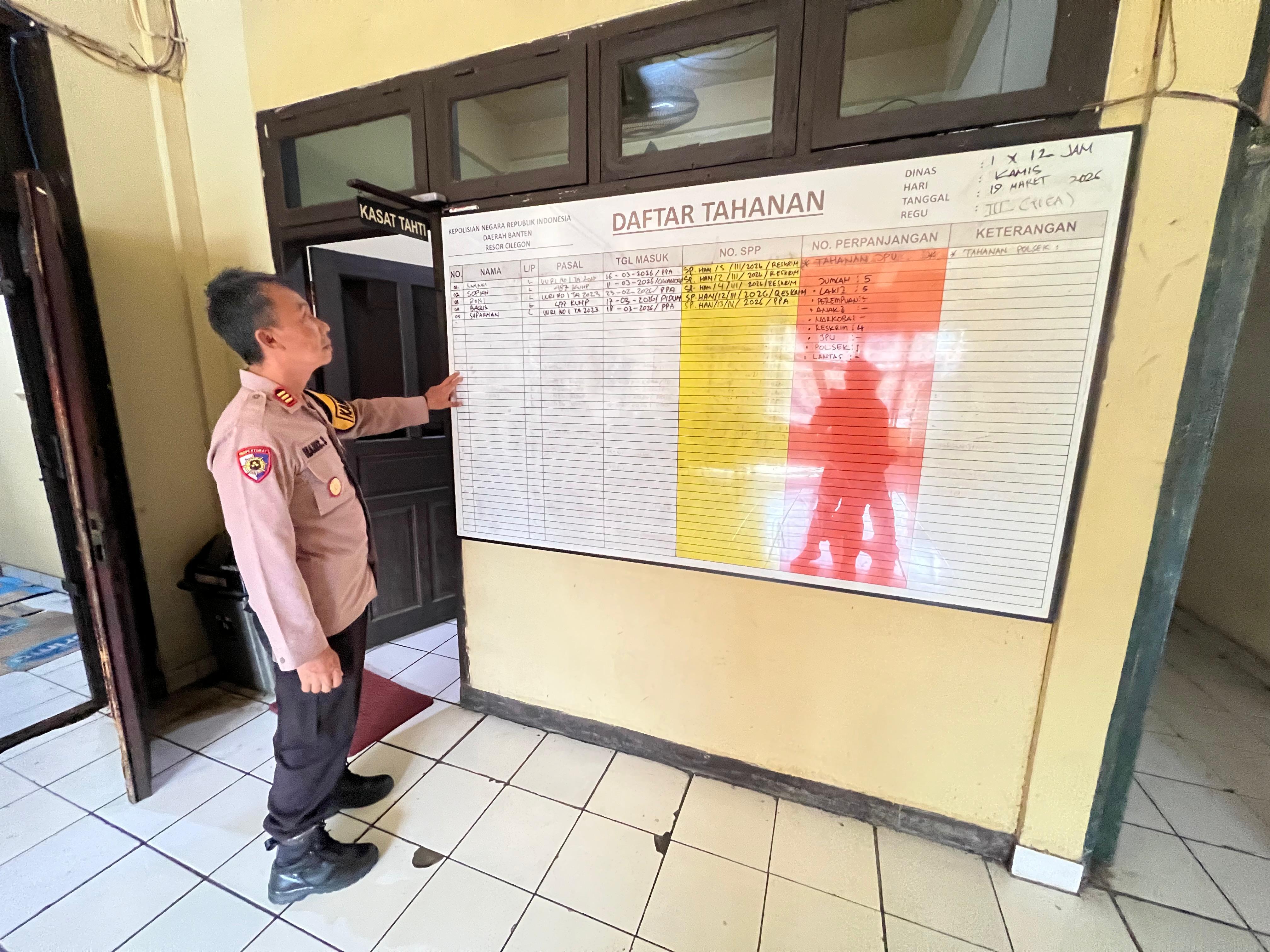 memastikan jumlah tahan yang ada pada laporan sat tahti Polres Cilegon terhadap