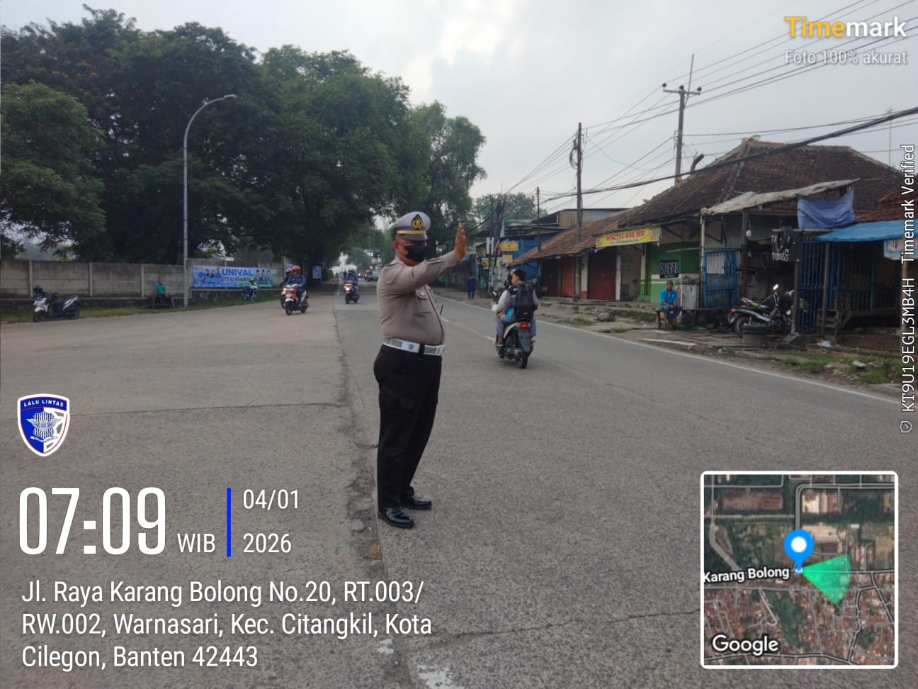 Cilegon – Berikan Pelayanan Kepada Masyarakat Personil Polsek Ciwandan Polres Cilegon Polda Banten melaksanakan pengaturan di titik kepadatan Arus Lalu-lintas Yang Ada Di daerah Hukum Polsek Ciwandan, Rabu (01/04/2026).