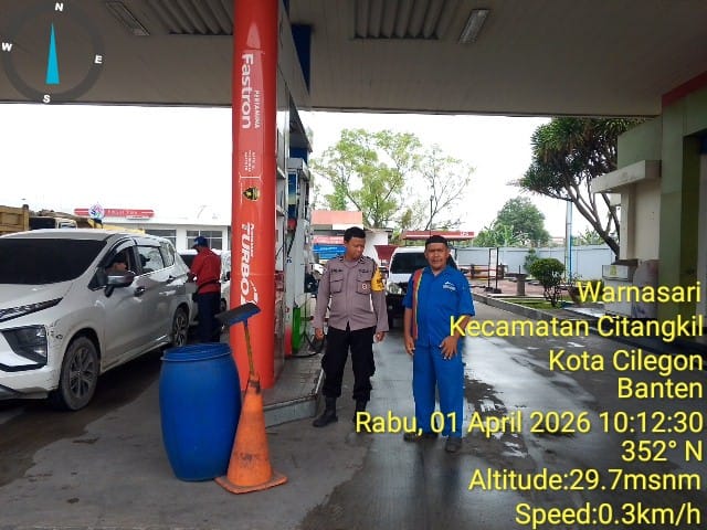 Cilegon - Kepolisian Polsek Ciwandan Polres Cilegon Polda Banten, melakukan pengecekan stok Bahan Bakar Minyak (BBM) di dua SPBU di wilayah Ciwandan, Cilegon, Rabu (01/04/2026).
