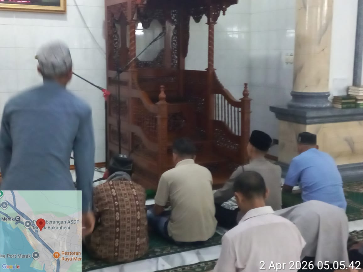 Cilegon – Personil Kskp Merak Polres Cilegon Polda Banten menggelar kegiatan Pembinaan Rohani dengan shalat subuh keliling di Masjid Yang ada Di Daerah hukum Polsek Kp Merak Polres Cilegon Polda Banten, Kamis (02/04/2026).