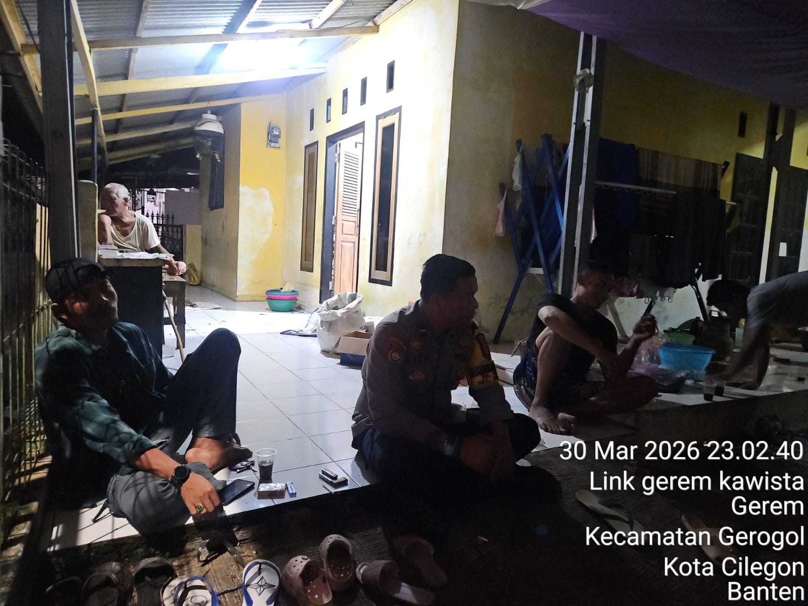 Kapolsek Ciwandan dan Bhabinkamtibmas Ciwandan melaksanakan kegiatan patroli untuk menjaga situasi kamtibmas yang aman dan kondusif. Kegiatan patroli ini dilakukan untuk ¹: