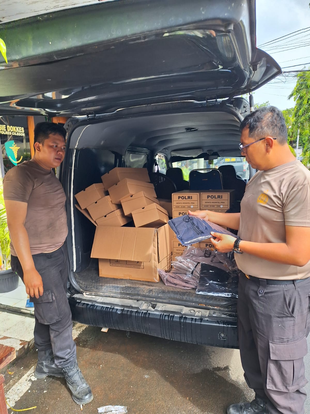 Cilegon Polres cilegon Polda Banten  staf logistic Melakukan pengambilan Kaporlap yang berada digudang logistic Polda Banten,Kaporlap tersebut adalah rutin yang dibagikan oleh polda Banten kejajaran Polres dan satker,Dimana nanti nya Kaporlap tersebut akan di distribusikan kepada anggota Polres Cilegon dan tiap-tiap anggota akan di data sebeulum nya agar tidak ada anggota yang mendapatkan double nanti nya,Kegiatan ini sudah rutin dilaksanakan.