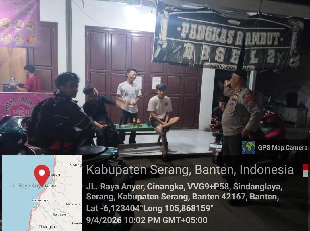 *Cilegon* – Dalam Rangka Pencegahan Street Crime dan Memelihara situasi keamanan dan ketertiban serta memberikan rasa aman dan nyaman di masyarakat,Salah satu upaya untuk mewujudkan hal tersebut sebagaimana yang dilakukan oleh Personil Polsek Cinangka Polres Cilegon Polda Banten melaksanakan giat patroli blue light malam hari hingga menjelang pagi, Jumat (10/04/2026).