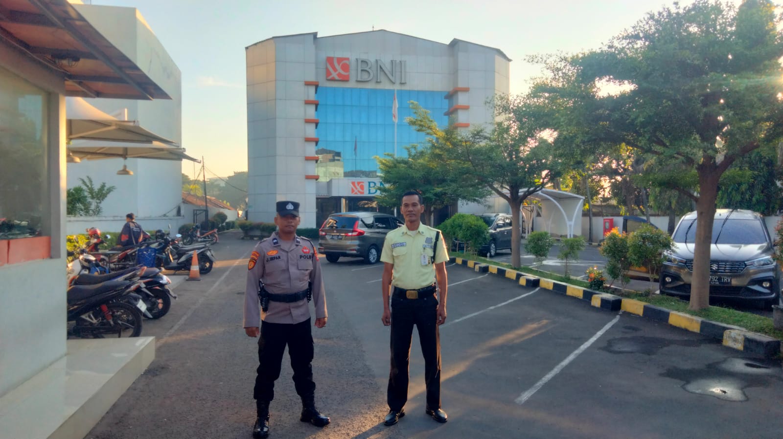 Pastikan kemanan dan kenyamanan nasabah, Satpamobvit Polres Cilegon hadir amankan Bank.