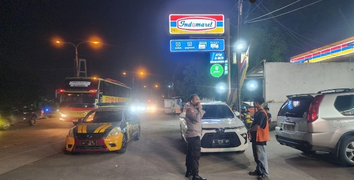 Anggota Samapta Polsek Purwakarta Laksanakan Patroli Dialogis, Sampaikan Himbauan Kamtibmas ke Juru Parkir Indomaret